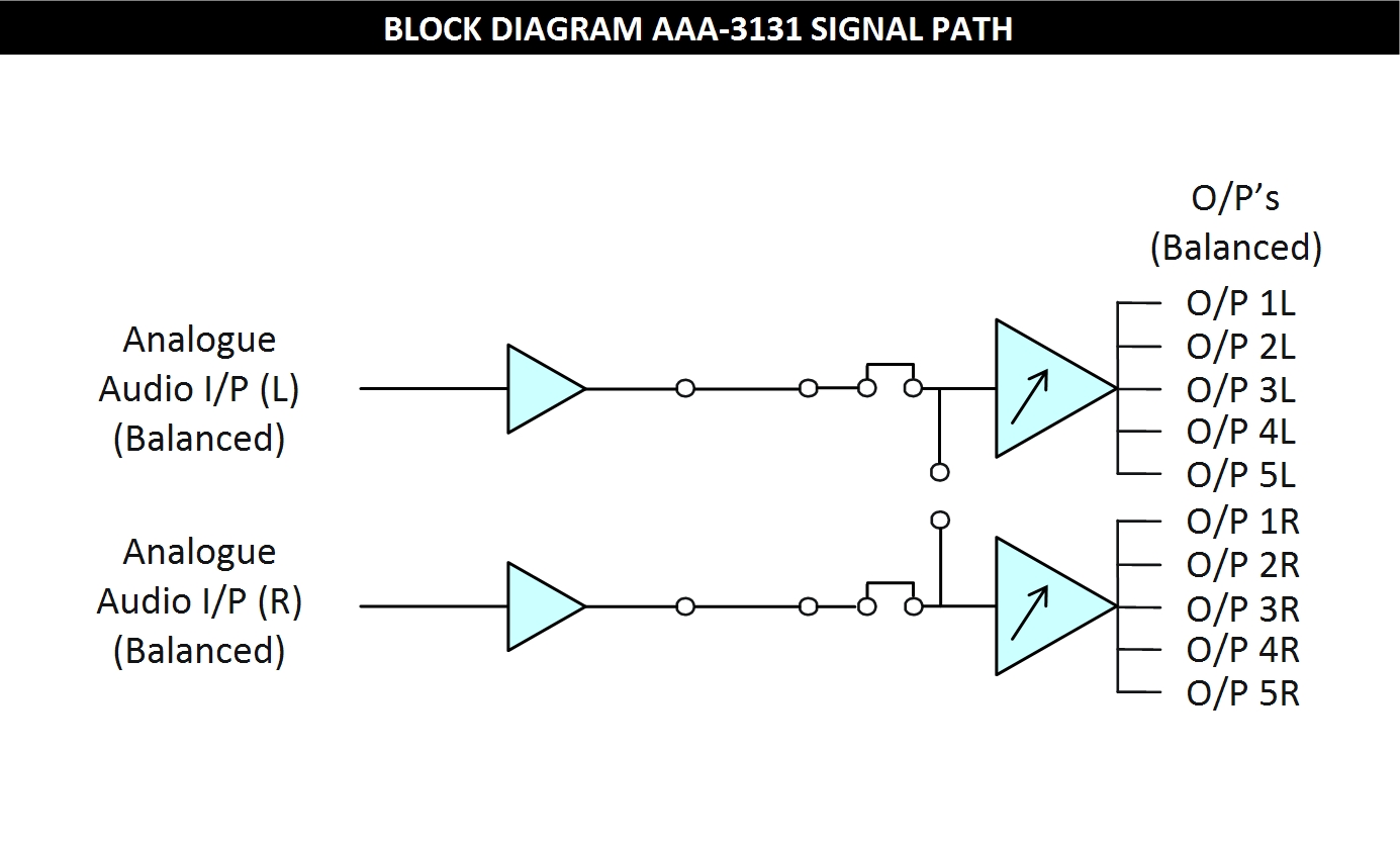 5 Stereo (10 mono) Analogue Audio Distribution Amplifier. | ||