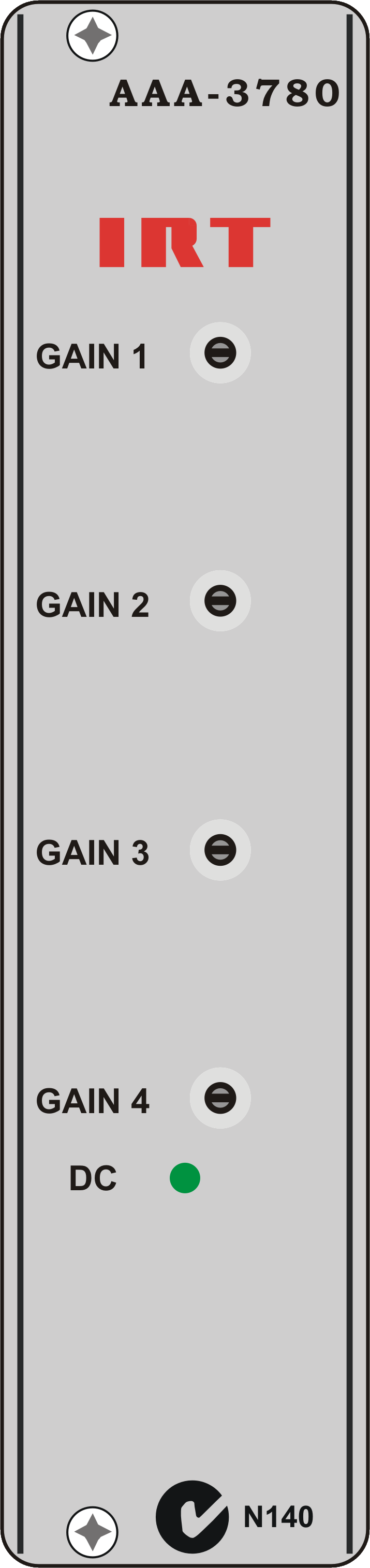 For mounting in IRT 19" rack chassis with input, output and power connections on the rear panel. |