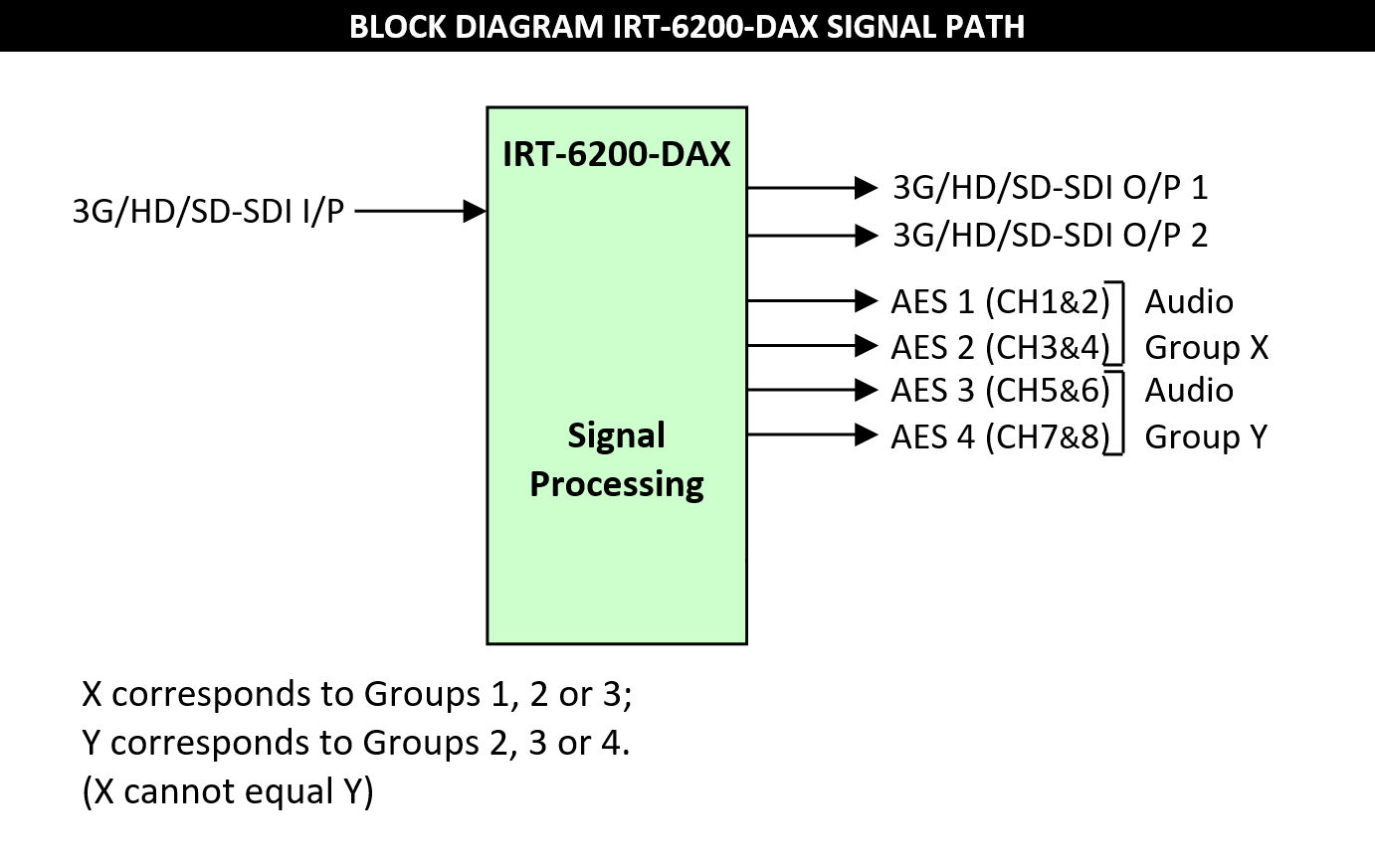 The IRT-6200-DAX is a high performance embedded audio extractor for either 2.97 Gb/s 3G‑SDI, 1.485 Gb/s HD-SDI or 270 Mb/s SD-SDI video signals.