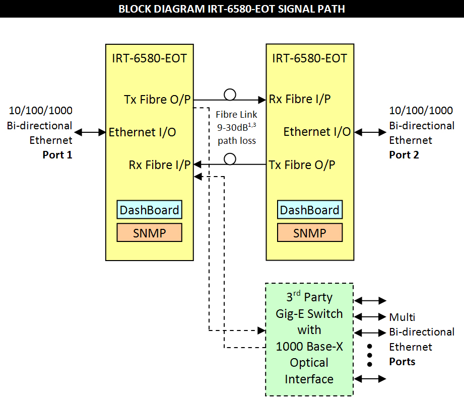 The IRT-6580-EOT transceiver module is designed principally for use as a 10/100/1000 Base-T Ethernet