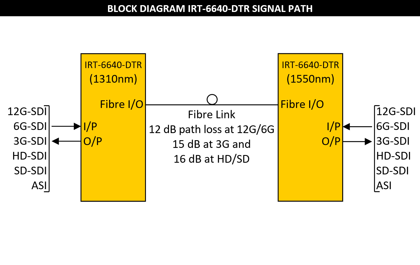 With WDM option fitted (standard), when operating as a pair, one IRT-6640-DTR must be fitted with a 1310nm