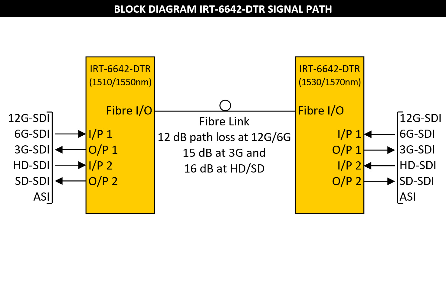 When operating as a pair, one IRT-6642-DTR must be fitted with a 1510nm/1550nm transceiver pair and