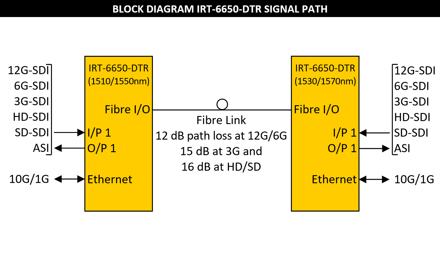 When operating as a pair, one IRT-6650-DTR must be fitted with a 1510nm/1550nm transceiver pair and